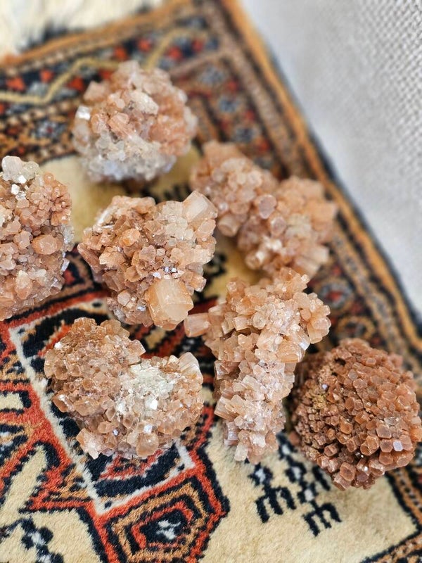 Aragoniet is een kalksteenachtige kristalvorming die voorkomt in diverse kleuren, zoals wit, geel, oranje, roze en bruin. Het staat bekend om zijn aardende en stabiliserende eigenschappen. Hier zijn enkele van de mogelijke effecten en werkingen van Aragoniet: