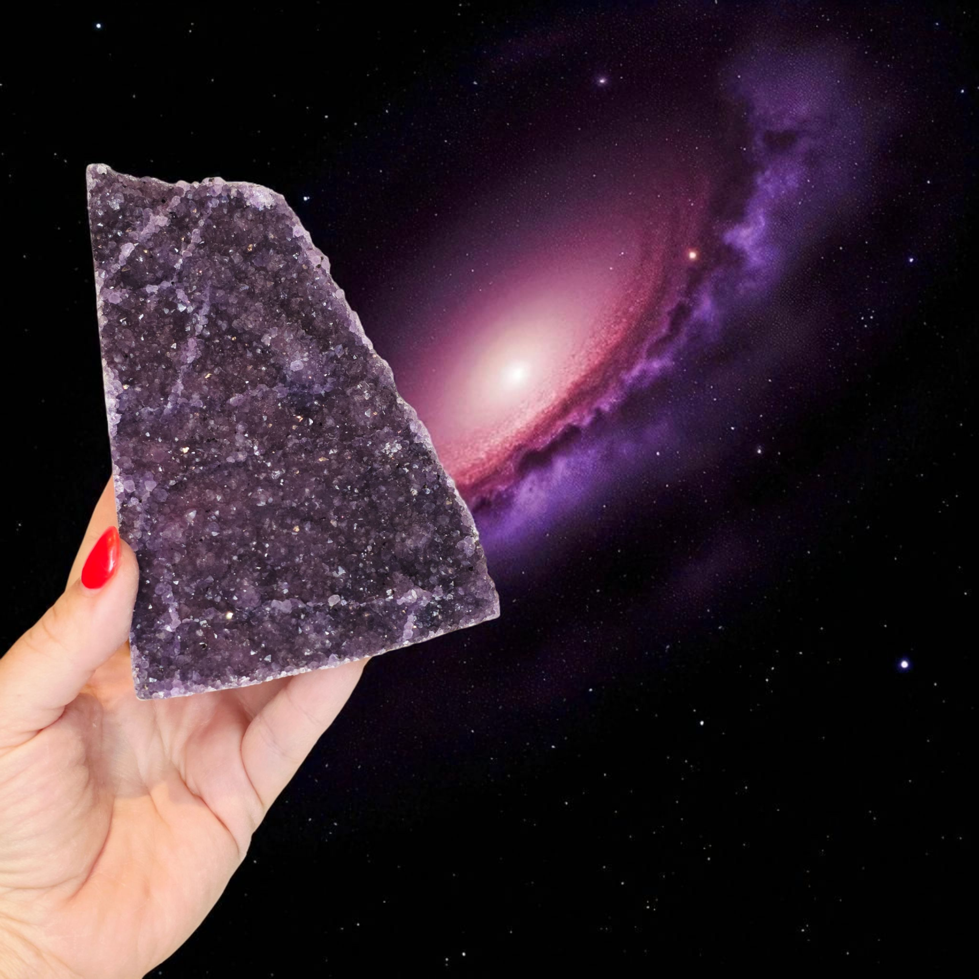 • De unieke ‘sterrenhemel’-structuur van Galaxy Amethist wordt geassocieerd met kosmische inspiratie en creativiteit.