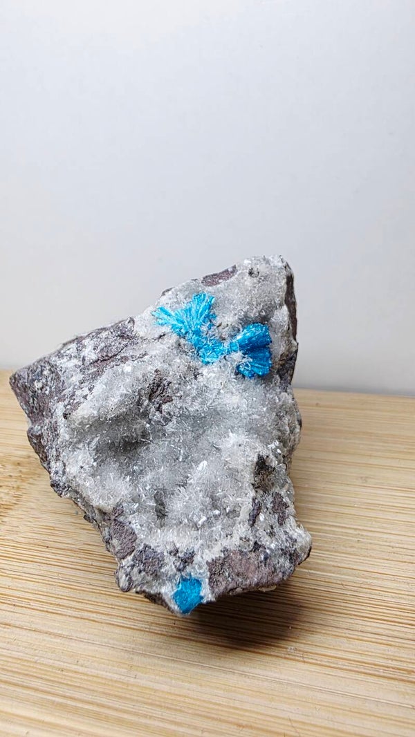Cavansiet is een zeldzame, felblauwe mineralenbloesem die vooral voorkomt in India.
